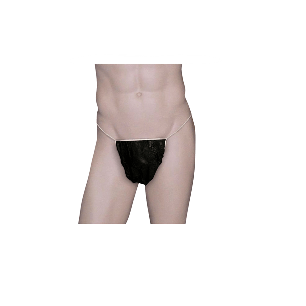 Tanga desechable negro para caballero, cómodo, discreto y transpirable. Uso en estética y spa.