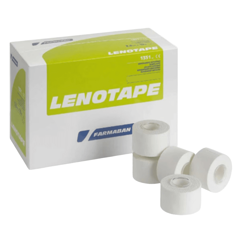Esparadrapo LENOTAPE Tejido blanco de algodón no elástico con adhesivo termofusible de alta adhesividad, rasgable en ambas direcciones y libre de látex. Ideal para vendajes funcionales y deportivos (taping).