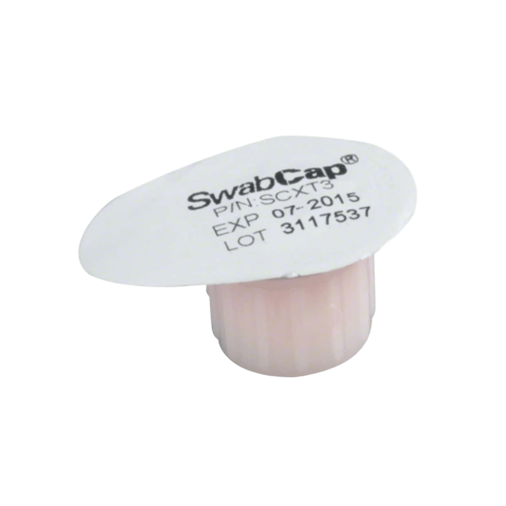 Swabcap – Tapón desinfectante estéril para válvulas de acceso venoso Tapón con esponja impregnada en alcohol isopropílico (70%), compatible con válvulas de superficie plana. Proporciona desinfección pasiva, sin aguja, hasta por 7 días. Libre de látex y DEHP.