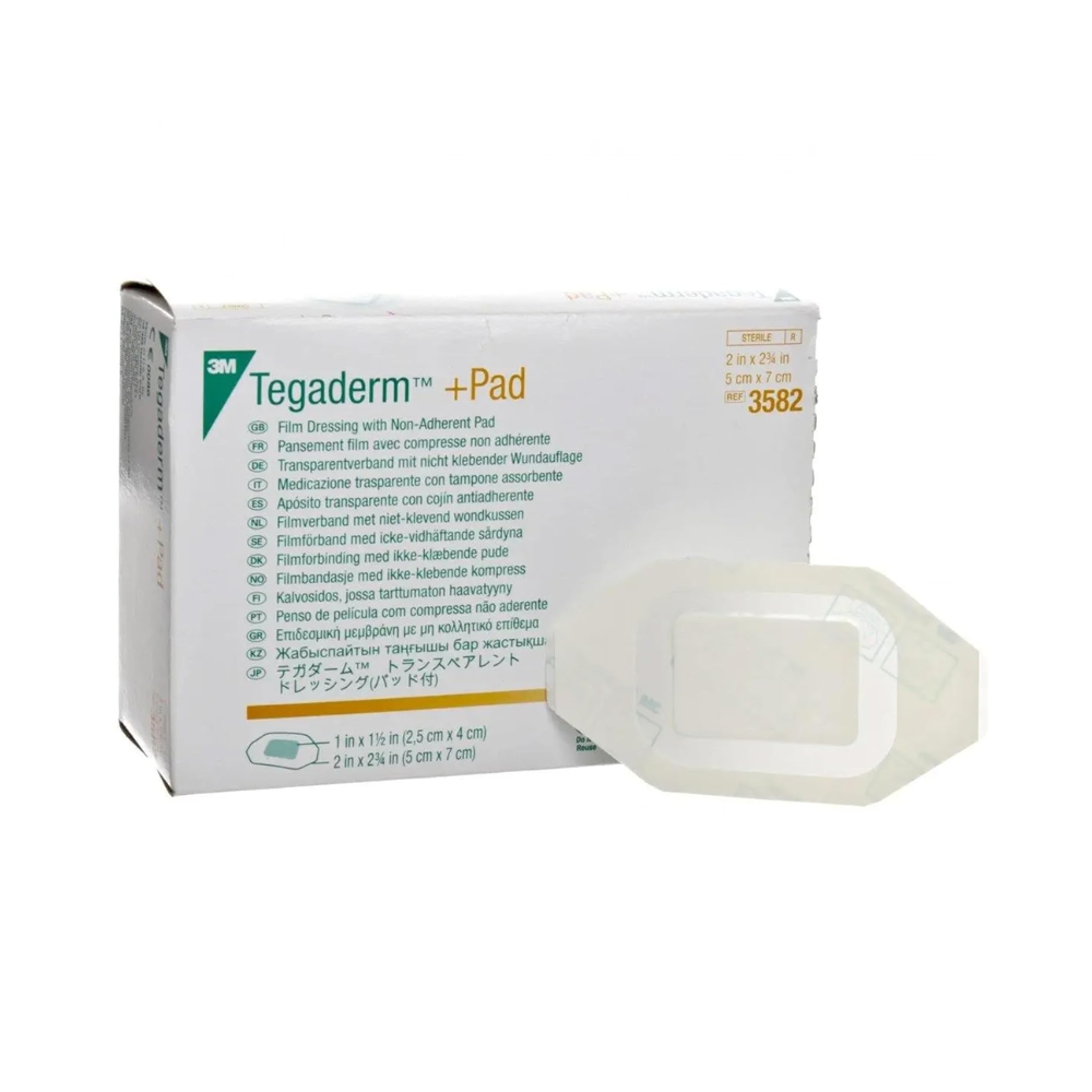 Tegaderm + apósito 5 cm x 7 cm. El 3M Tegaderm + Pad (Ref. 1582) es un apósito estéril transparente con almohadilla absorbente no adherente, diseñado para proteger heridas quirúrgicas y superficiales. Es impermeable, transpirable, hipoalergénico y libre de látex, ofreciendo una barrera eficaz contra bacterias y virus mientras permite el intercambio de humedad y oxígeno.