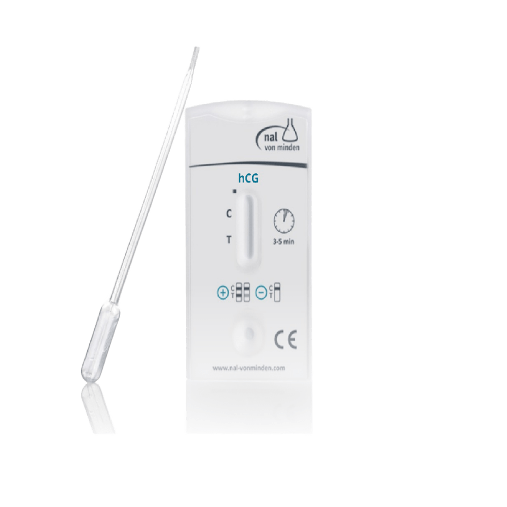 Test rápido de embarazo en formato cassette NADAL®, para detección cualitativa de hCG en orina, sensibilidad de 25 mIU/ml. Proporciona resultados fiables en 3-5 minutos, con precisión superior al 99%. Incluye pipeta dosificadora, fácil de usar y de interpretar, ideal para uso profesional en clínicas y laboratorios. Caja de 30 tests, recomendado para diagnóstico temprano y seguro de embarazo.