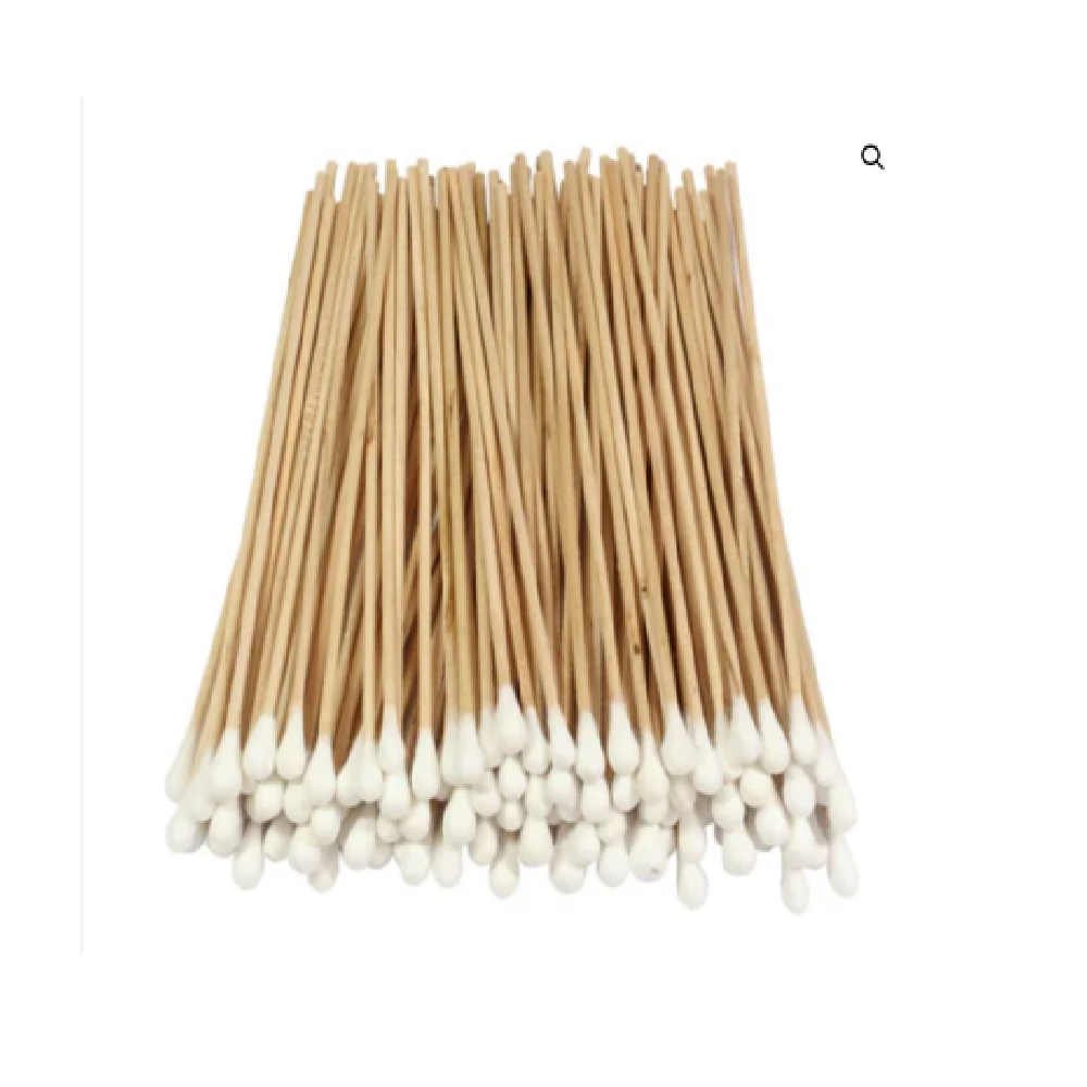 Torunda de madera con algodón, para toma de muestras, manejo firme y control preciso.
