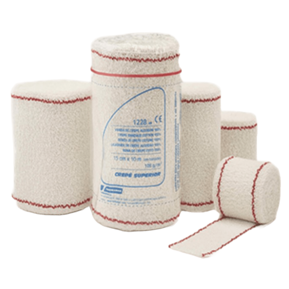 La venda de crepé está fabricada con un tejido elástico longitudinal que combina principalmente algodón (84%), poliéster (15%) y lycra (1%), proporcionando una excelente adaptabilidad y confort. Su característica superficie crepada asegura que la venda se mantenga firme y no se deslice durante su uso, garantizando un vendaje estable. Presenta bordes cosidos que evitan el deshilachado, manteniendo la integridad del material tras múltiples manipulaciones. Su color natural con líneas laterales rojas facilita la identificación y control del producto. Este tipo de venda está diseñada para ofrecer compresión suave a media, siendo ideal tanto para soporte como para la fijación de apósitos y vendajes funcionales. Además, es compatible con métodos de esterilización por radiación gamma y óxido de etileno, lo que la hace apta para aplicaciones que requieran alta higiene. No contiene látex, reduciendo el riesgo de alergias. Se recomienda aplicar únicamente sobre piel sana, evitando colocarla sobre apósitos estériles o heridas abiertas, y no es adecuada para uso en áreas clínicas con alta sensibilidad microbiológica como quirófanos o unidades de cuidados intensivos. Finalmente, su almacenamiento debe realizarse en ambientes frescos y secos, con una vida útil de hasta 5 años, garantizando su calidad durante ese tiempo. .