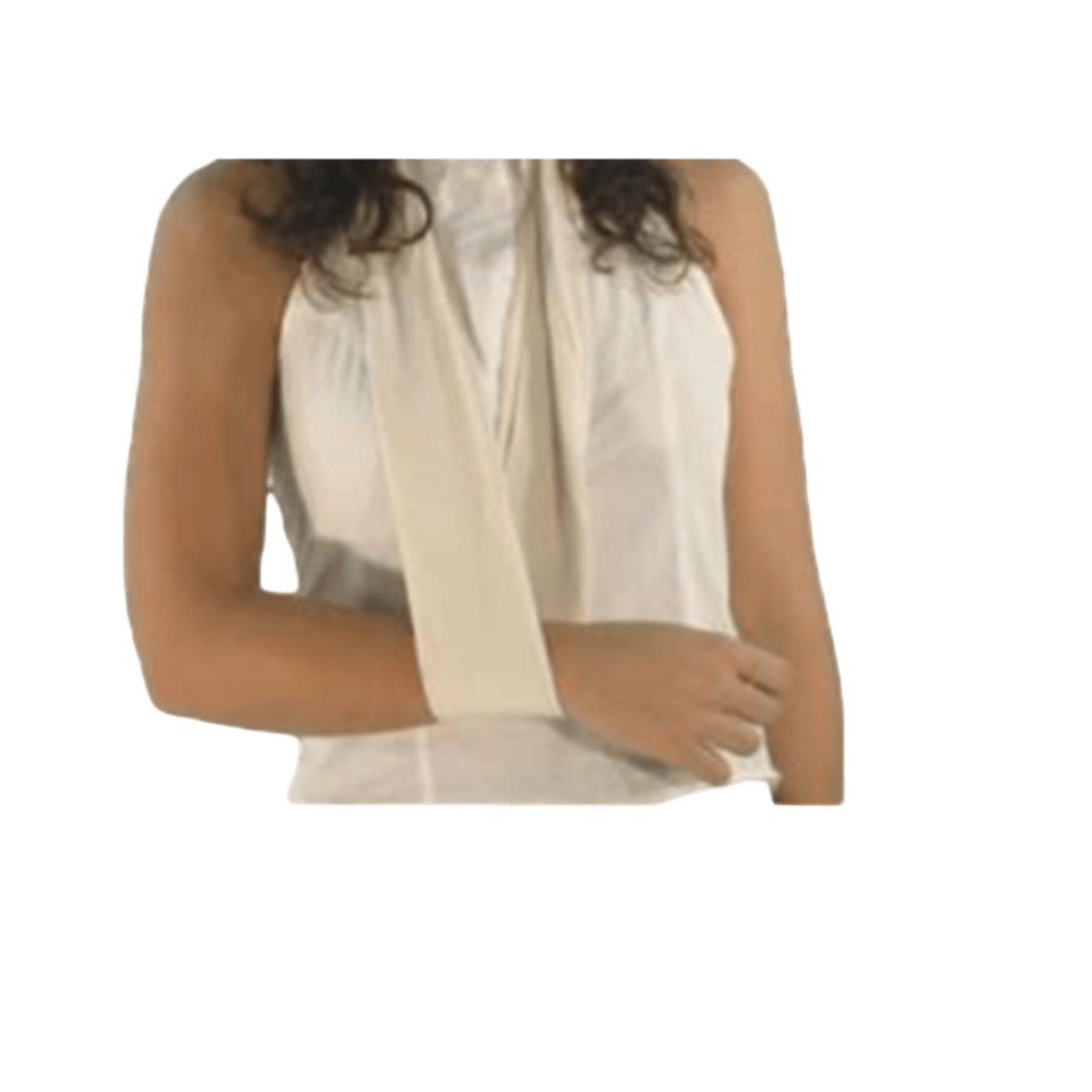 Venda triangular para cabestrillo es un material de primeros auxilios en forma de triángulo, usado principalmente para inmovilizar y dar soporte a un brazo o extremidad lesionada. Descrip